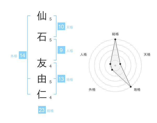 仙石 友由仁さんの総格は23画の5点!