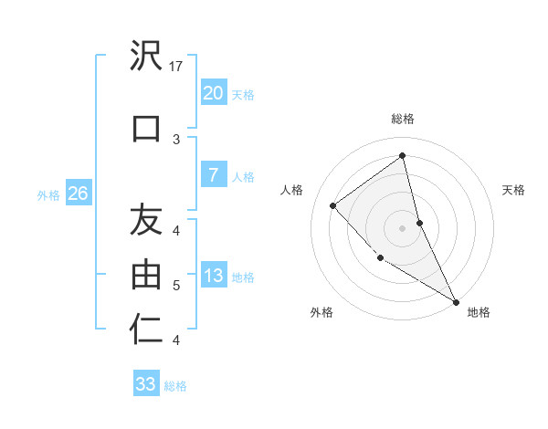 沢口 友由仁さんの総格は33画の4点!