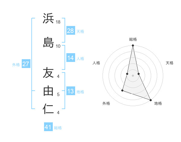 浜島 友由仁さんを姓名の画数から五運を鑑定
