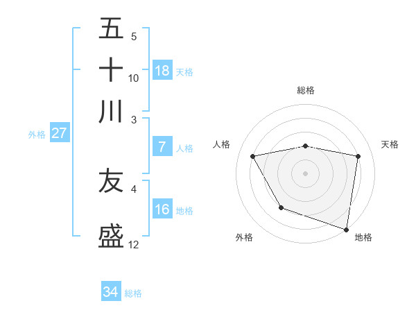 五十川 友盛さんを姓名の画数から五運を鑑定