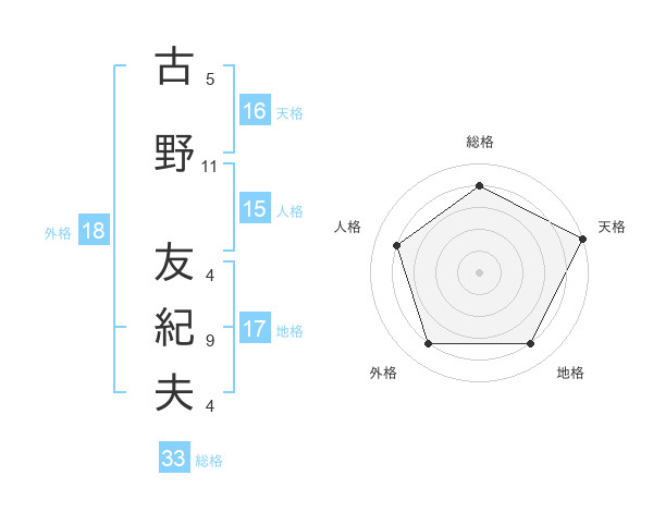 古野 友紀夫さんを姓名の画数から五運を鑑定