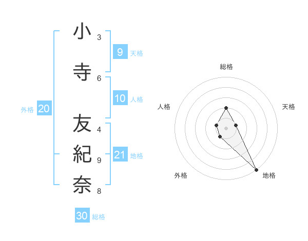 小寺 友紀奈さんの総格は30画の2点!