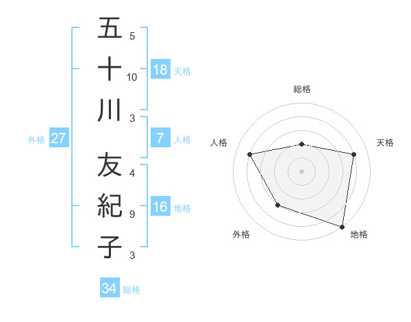 五十川 友紀子さんを姓名の画数から五運を鑑定