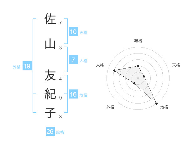 佐山 友紀子さんを姓名の画数から五運を鑑定