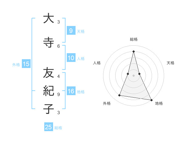 大寺 友紀子さんを姓名の画数から五運を鑑定