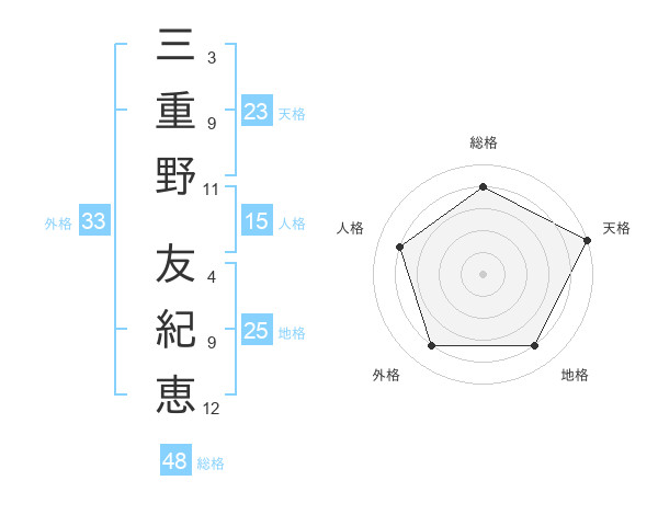 三重野 友紀恵さんを姓名の画数から五運を鑑定