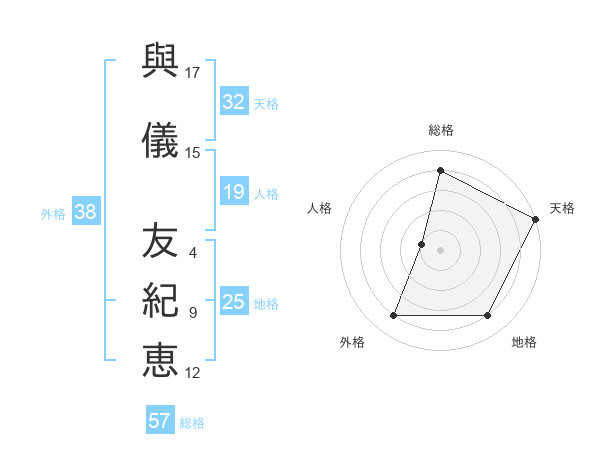 與儀 友紀恵さんを姓名の画数から五運を鑑定