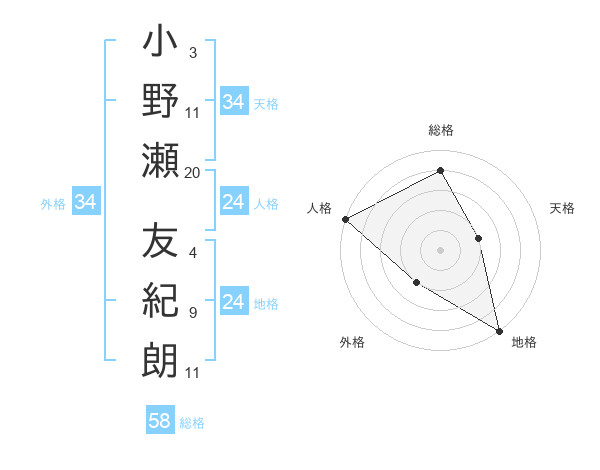 小野瀬 友紀朗さんを姓名の画数から五運を鑑定