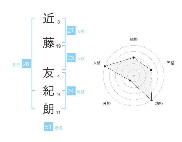 近藤 友紀朗さんを姓名の画数から五運を鑑定