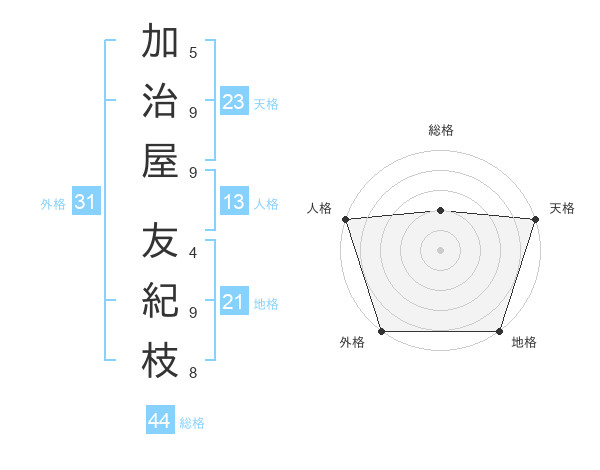 加治屋 友紀枝さんの天格は23画の5点
