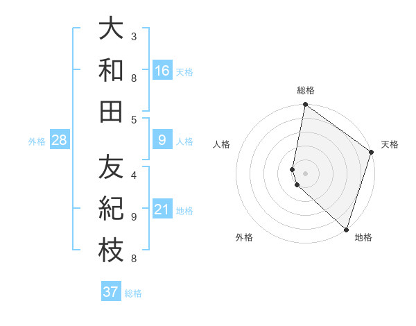 大和田 友紀枝さんを姓名の画数から五運を鑑定