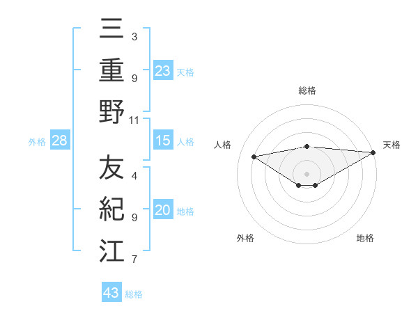 三重野 友紀江さんを姓名の画数から五運を鑑定