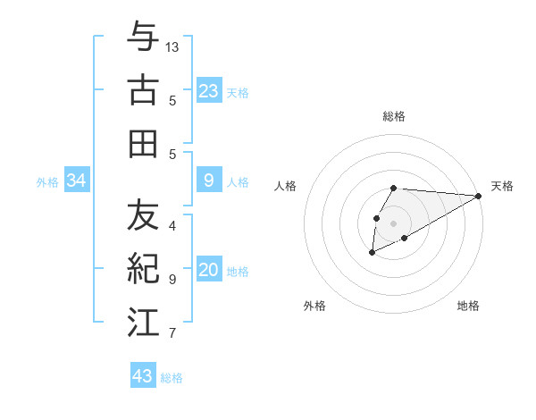 与古田 友紀江さんを姓名の画数から五運を鑑定