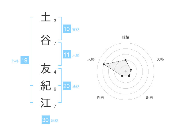 土谷 友紀江さんを姓名の画数から五運を鑑定