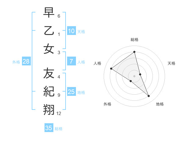 早乙女 友紀翔さんを姓名の画数から五運を鑑定