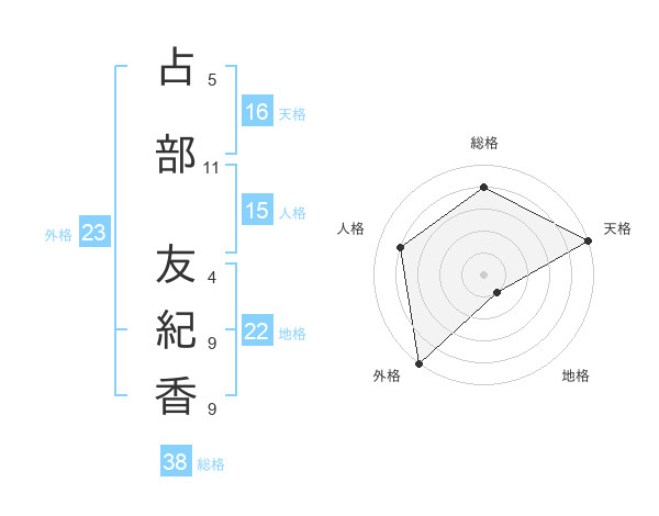 占部 友紀香さんの天格は16画の5点!