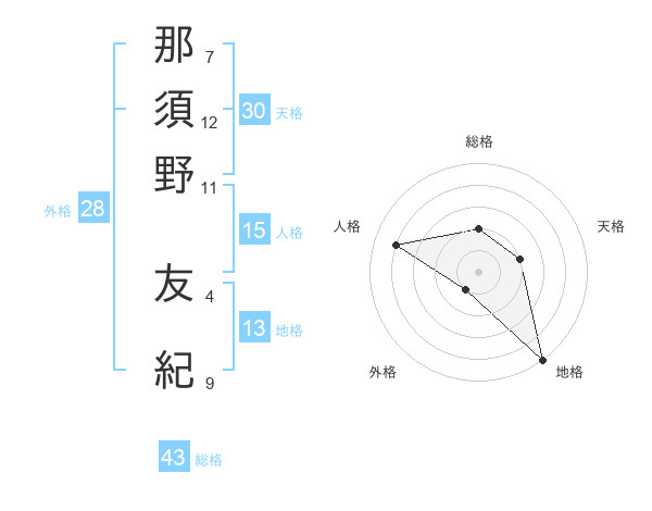 那須野 友紀さんを姓名の画数から五運を鑑定