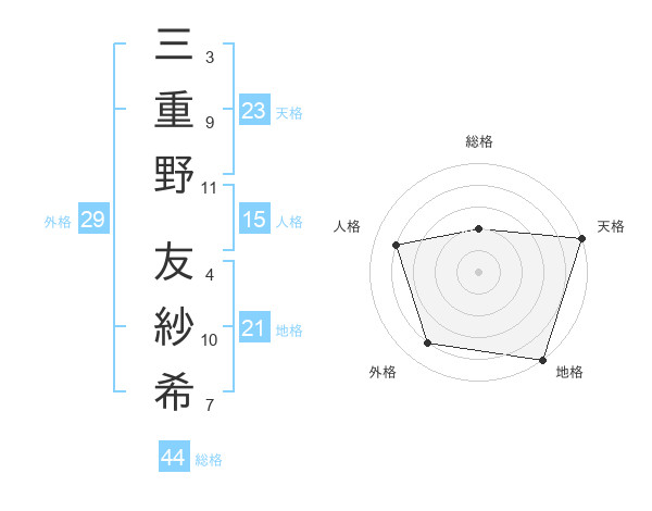 三重野 友紗希さんを姓名の画数から五運を鑑定