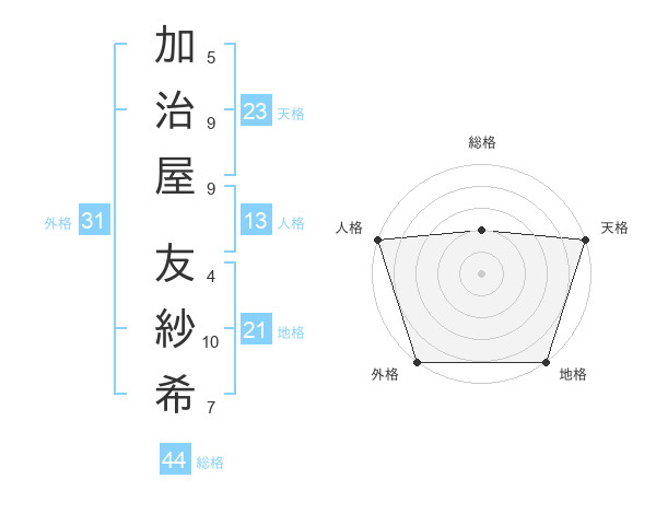 加治屋 友紗希さんを姓名の画数から五運を鑑定