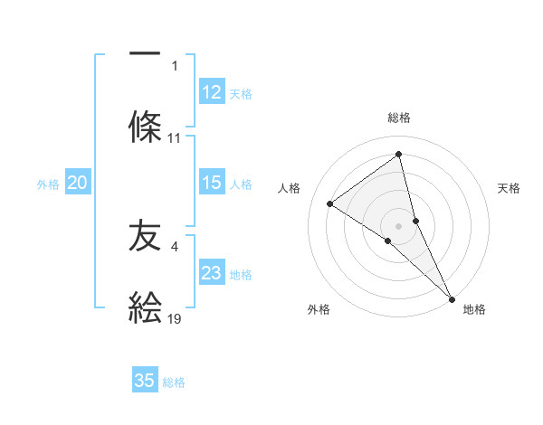 一條 友絵さんの総格は35画の4点!