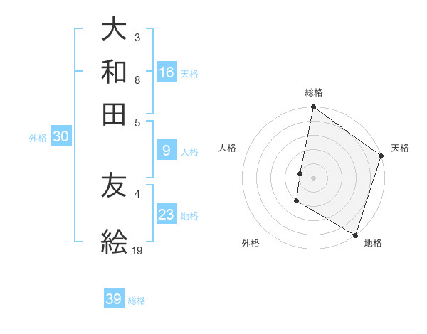 大和田 友絵さんを姓名の画数から五運を鑑定
