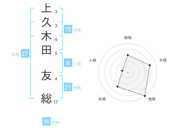 上久木田 友総さんを姓名の画数から五運を鑑定