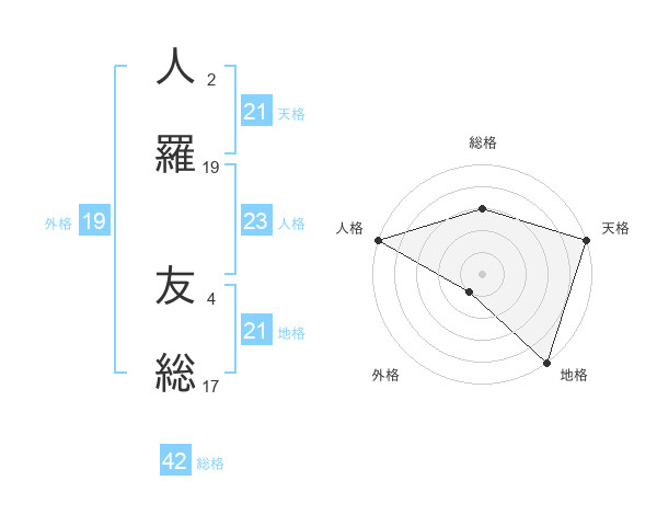 人羅 友総さんの天格は21画の5点!