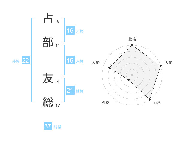 占部 友総さんの総格は37画の5点!