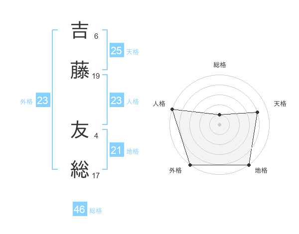 吉藤 友総さんの天格は25画の4点!