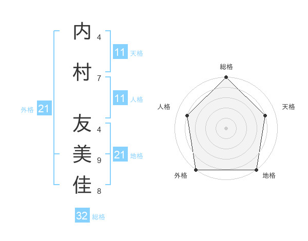 内村 友美佳さんの外格は21画の5点!