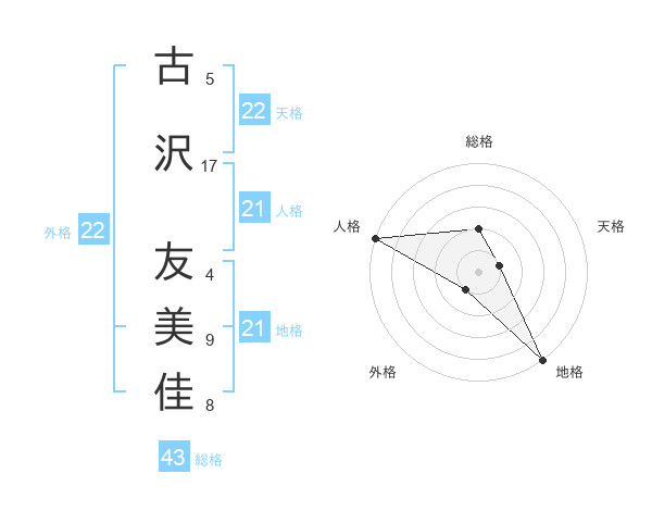古沢 友美佳さんの人格は21画の5点!
