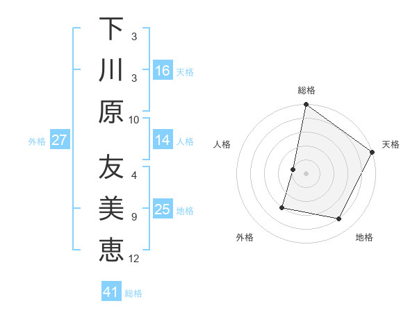 下川原 友美恵さんを姓名の画数から五運を鑑定