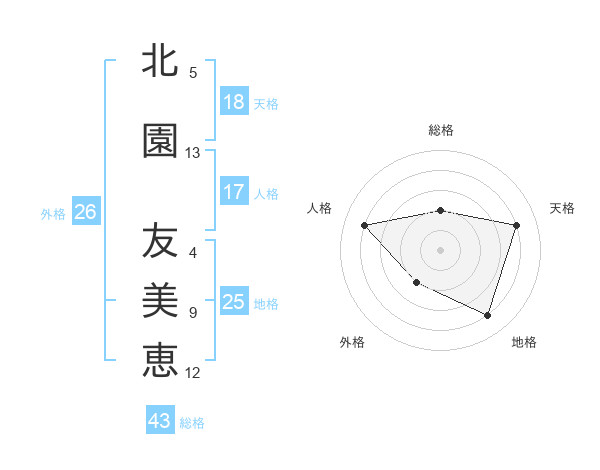 北園 友美恵さんの総格は43画の2点
