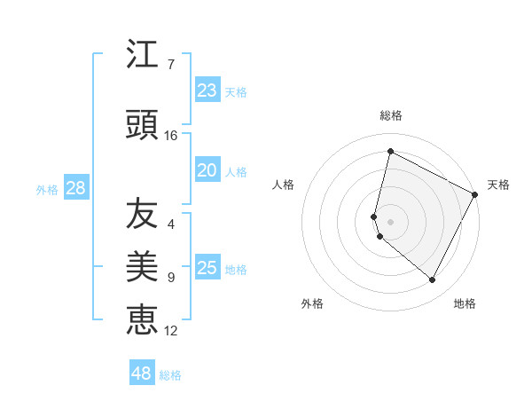 江頭 友美恵さんを姓名の画数から五運を鑑定