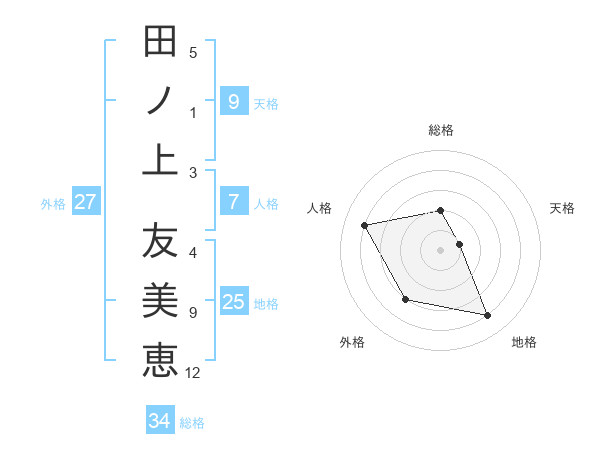 田ノ上 友美恵さんを姓名の画数から五運を鑑定