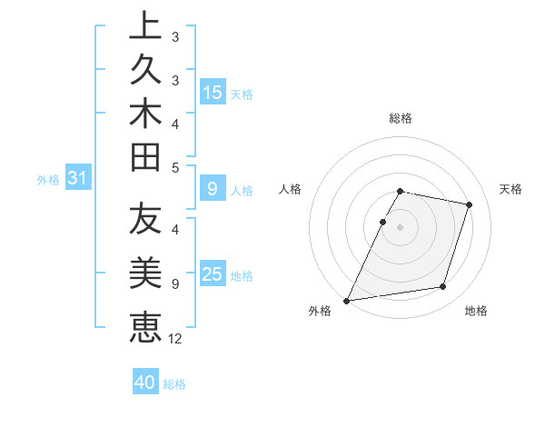上久木田 友美恵さんを姓名の画数から五運を鑑定