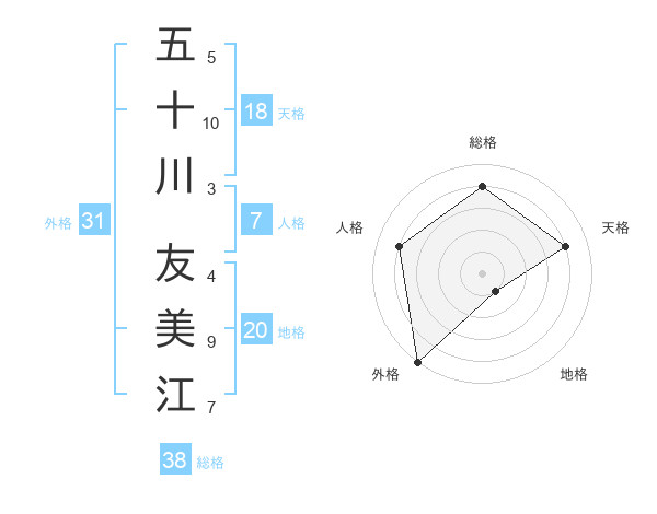 五十川 友美江さんを姓名の画数から五運を鑑定