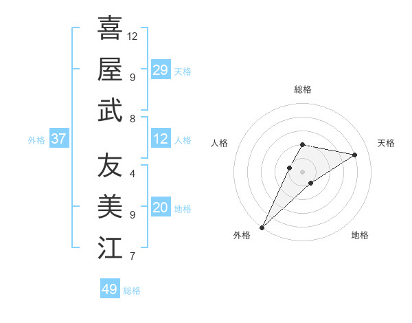 喜屋武 友美江さんを姓名の画数から五運を鑑定