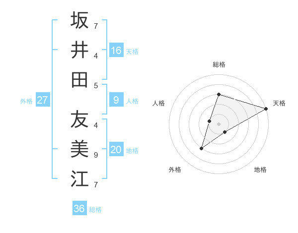 坂井田 友美江さんを姓名の画数から五運を鑑定