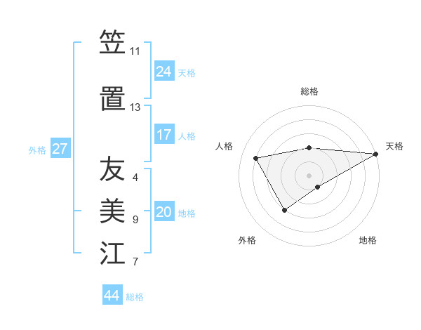 笠置 友美江さんの天格は24画の5点!
