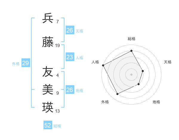 兵藤 友美瑛さんを姓名の画数から五運を鑑定