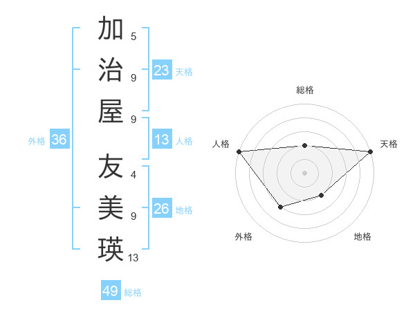 加治屋 友美瑛さんの天格は23画の5点!