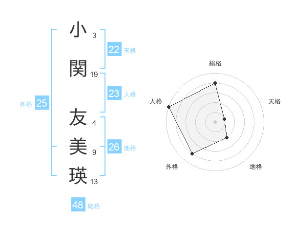 小関 友美瑛さんを姓名の画数から五運を鑑定