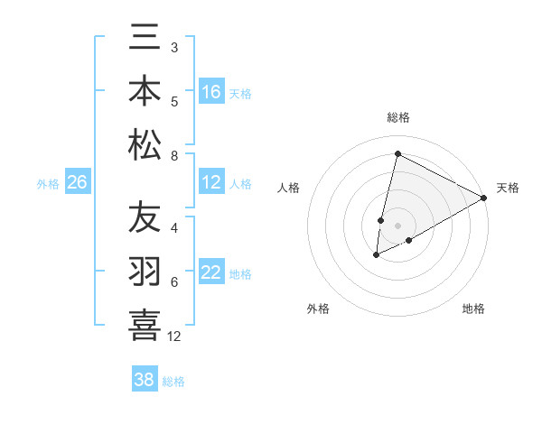 三本松 友羽喜さんを姓名の画数から五運を鑑定