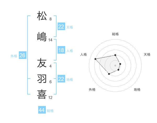 松嶋 友羽喜さんを姓名の画数から五運を鑑定