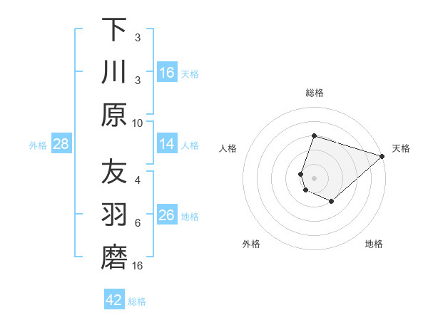 下川原 友羽磨さんの総格は42画の3点