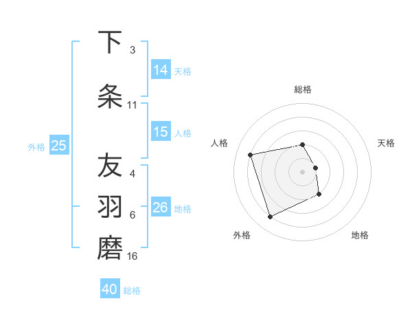 下条 友羽磨さんを姓名の画数から五運を鑑定