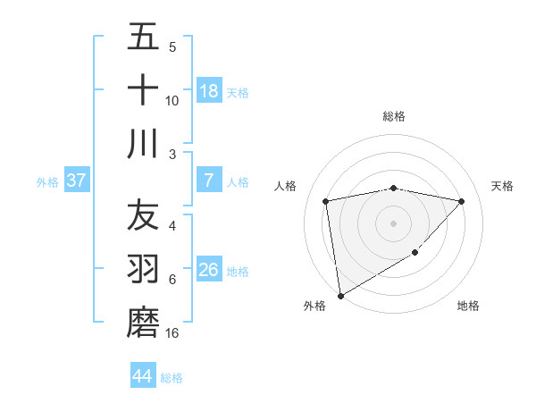 五十川 友羽磨さんを姓名の画数から五運を鑑定