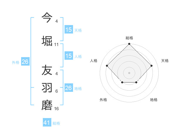 今堀 友羽磨さんを姓名の画数から五運を鑑定