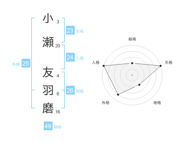 小瀬 友羽磨さんを姓名の画数から五運を鑑定